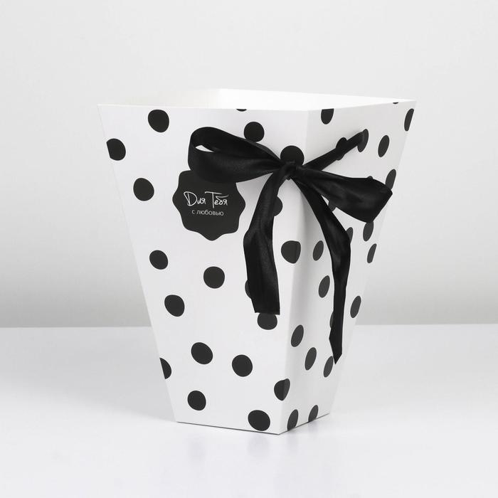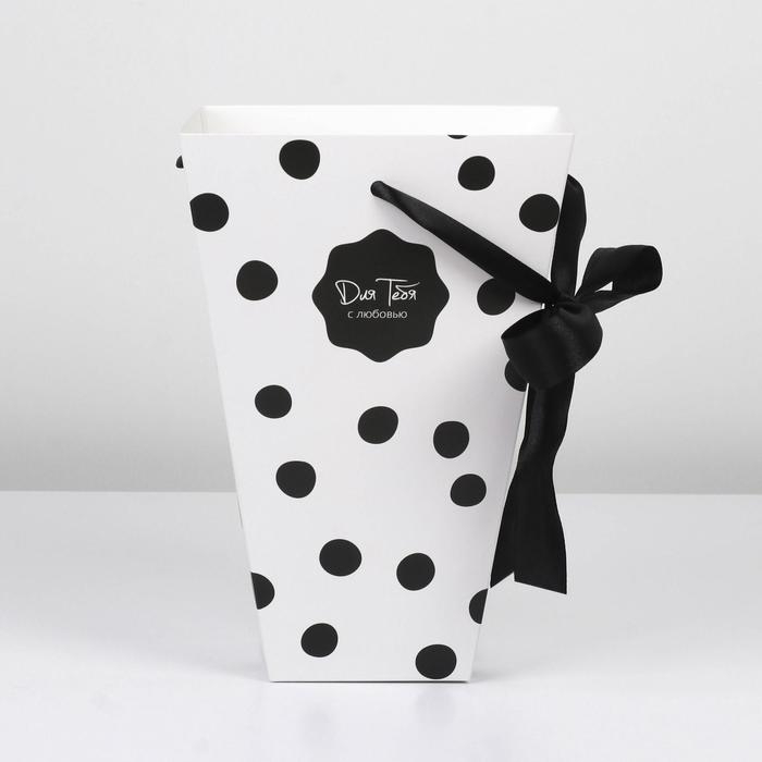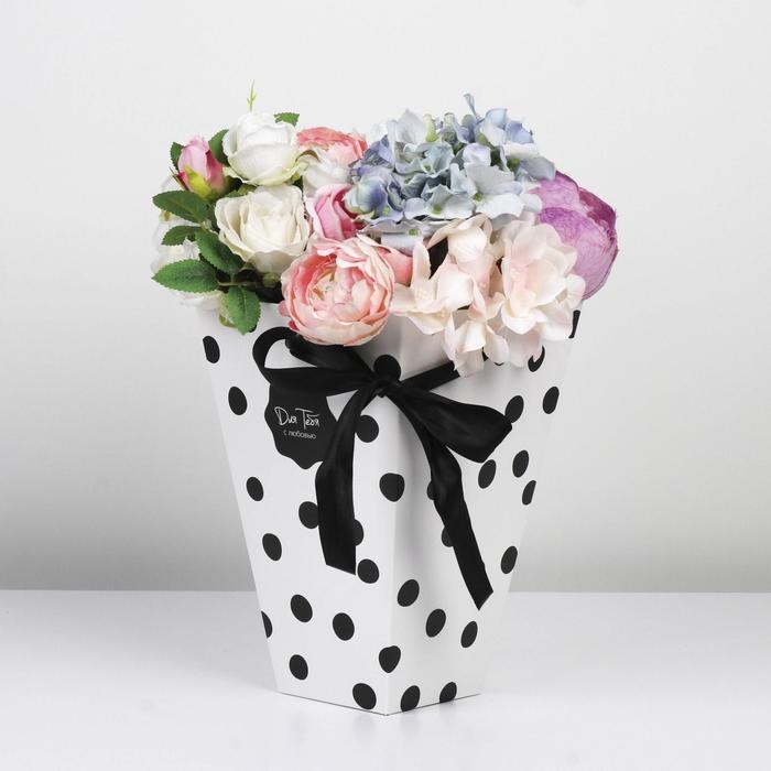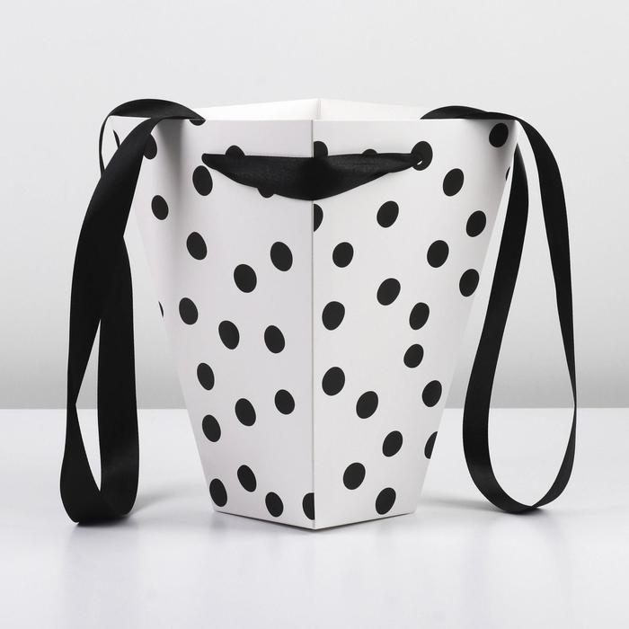 Коробка для цветов на лентах «Стильный горошек», 17 х 25 х 9 см