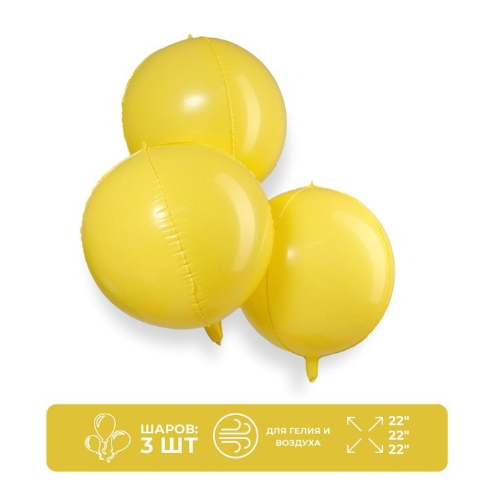 Воздушные шары полимерные 22" «Макарун», 3 шт., жёлтые