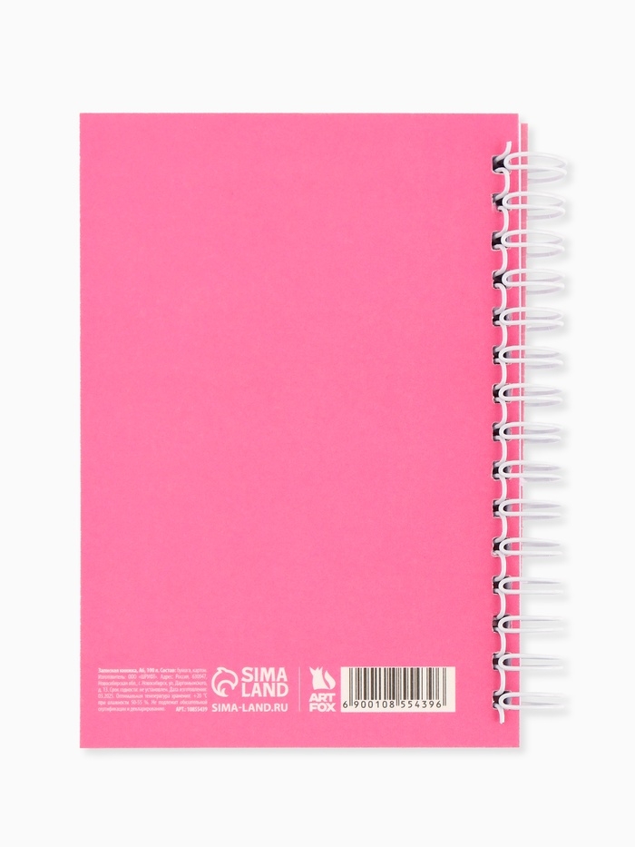 Записная книжка А6, 100 листов, в клетку "Розовый"