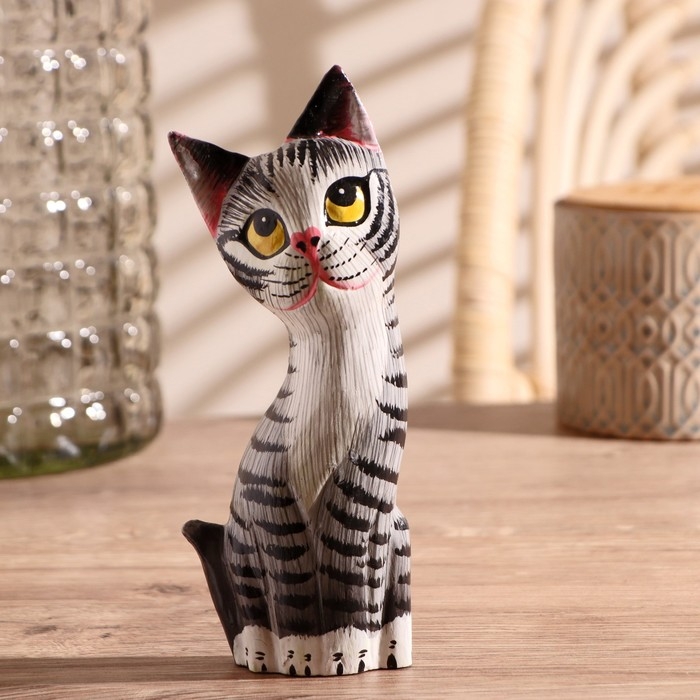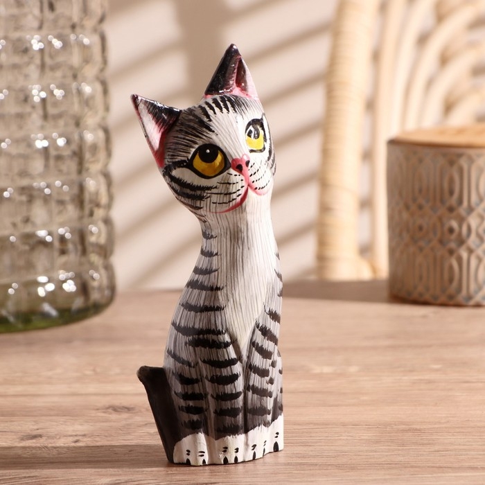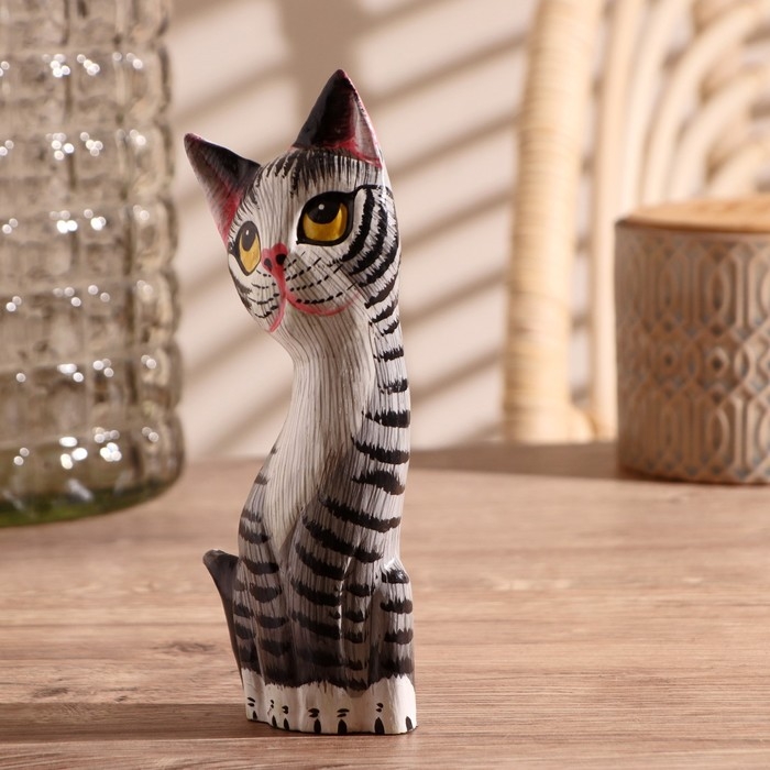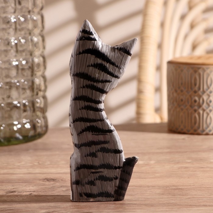 Сувенир дерево "Котёнок" серый 6х3х18 см