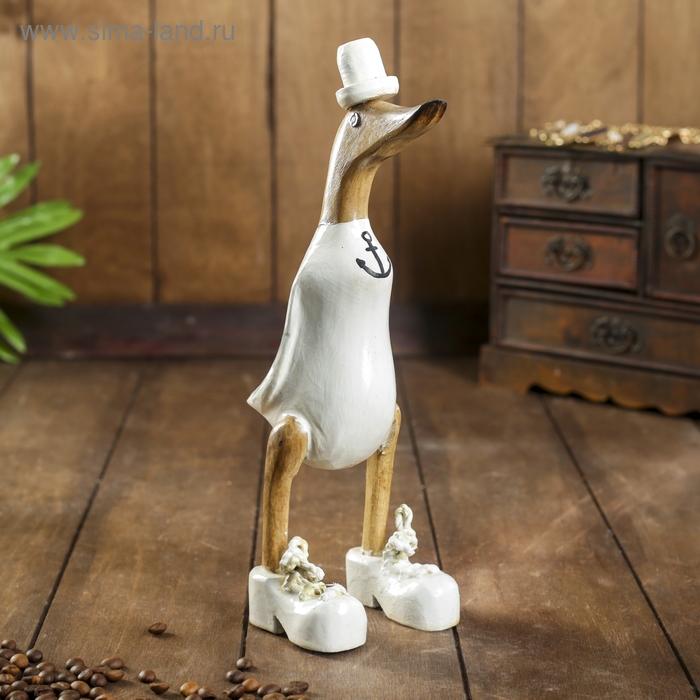 Сувенир дерево "Утка матрос в белом" 13х9х27 см