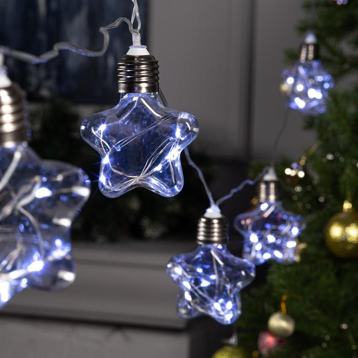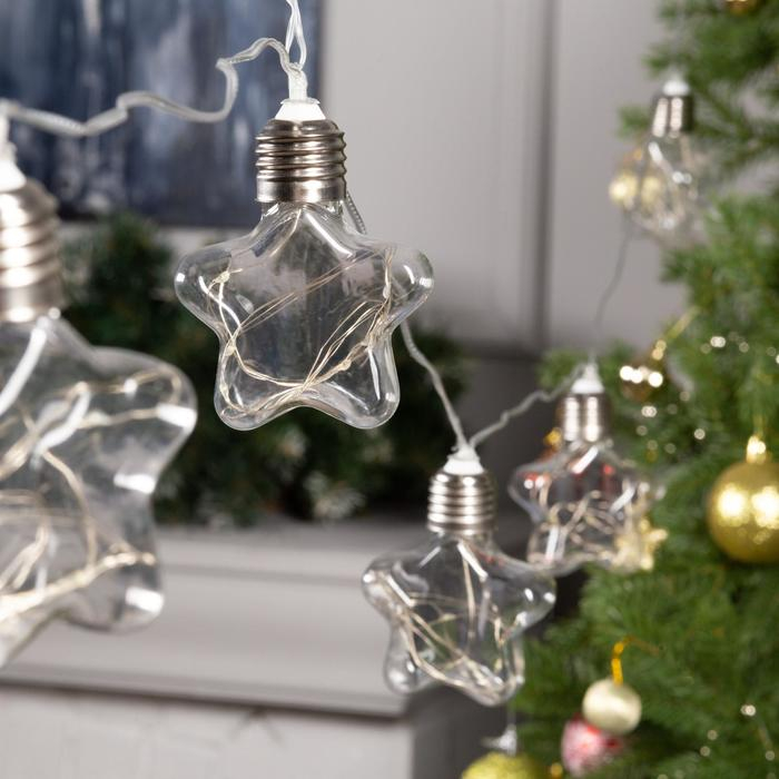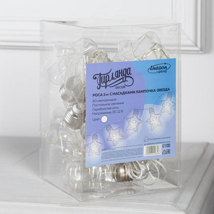Гирлянда «Нить» 3 м с насадками «Лампочки звездочки», IP20, прозрачная нить, 80 LED, свечение белое, 8 режимов, 220 В