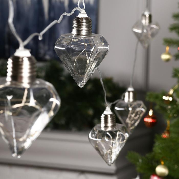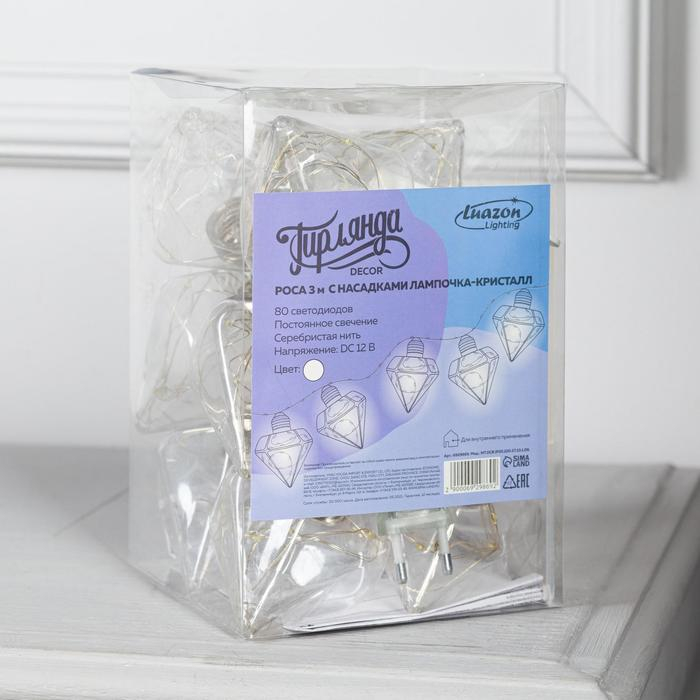 Гирлянда «Нить» 3 м с насадками «Лампочки кристалл», IP20, прозрачная нить, 80 LED, свечение белое, 8 режимов, 220 В