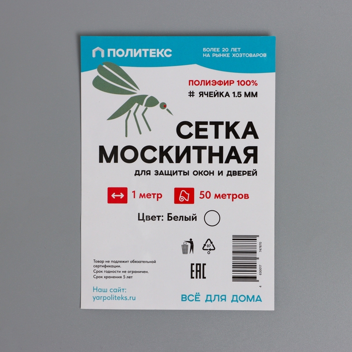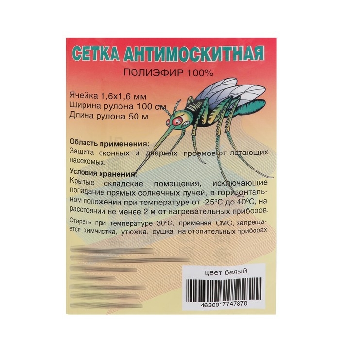 Сетка антимоскитная для окон и дверей, ширина — 100 см, цвет белый (в рулоне 50 м)