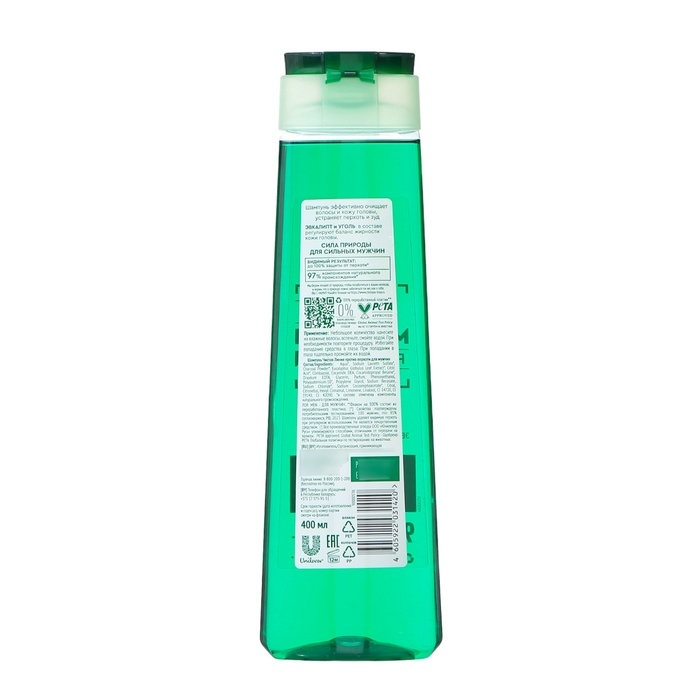 Шампунь для мужчин против перхоти ЧИСТАЯ ЛИНИЯ с эвкалиптом и углем, 400 мл