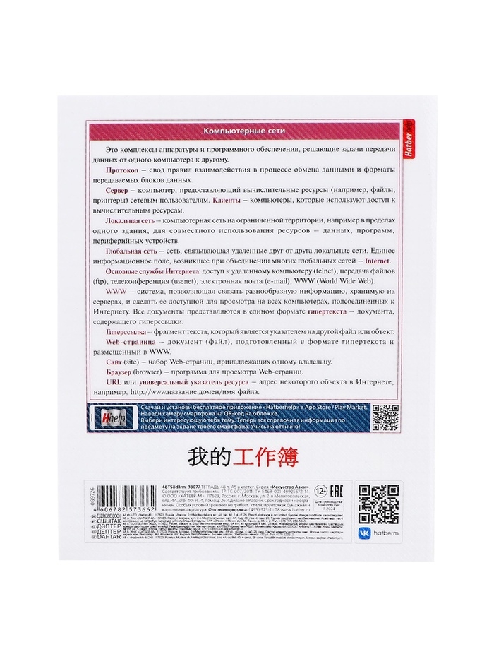 Тетрадь 48 листов в клетку «Искусство Азии» ИНФОРМАТИКА, пластиковая обложка с печатью, тиснение фольгой, с интерактивным справочником, блок ...
