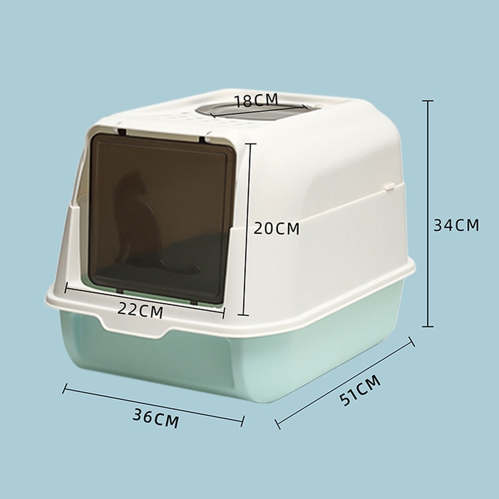 Туалет имеет пластиковый крытый корпус с высокими бортиками, чтобы предотвращает рассыпание наполнителя.