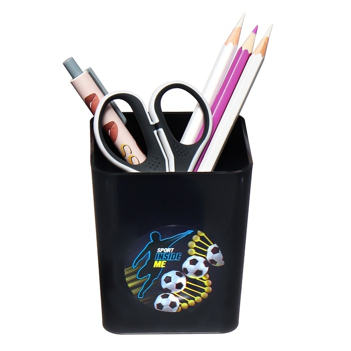 Подставка-стакан для канцелярии пластик ErichKrause Base, Sport DNA, черная