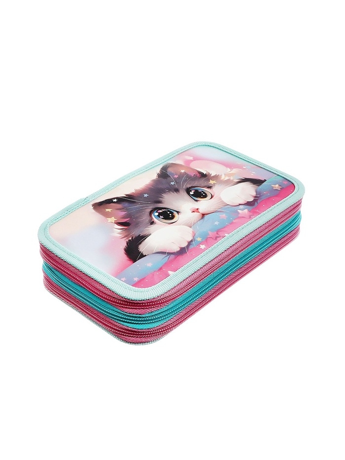 Пенал для школьных канцелярских принадлежностей с 3-мя отделениями. Увеличенный размер 125*205*55 мм (помещается карандаш с резинкой). Идеальное решение для первоклассника. Удобные молнии с трех сторон с металлическим бегунком, прочные резинки для предметов. Внутри пенала - цветная печать. Вмещает до 48 предметов. Материал снаружи - ламинированный картон с цветной печатью. Конструкция отличается износостойкостью и прочностью, поможет защитить канцелярские принадлежности от повреждений. Внутри пенала прочно пришиты резинки. Внутренняя часть пенала выполнена из картона с ламинацией. Поставляется без наполнения.