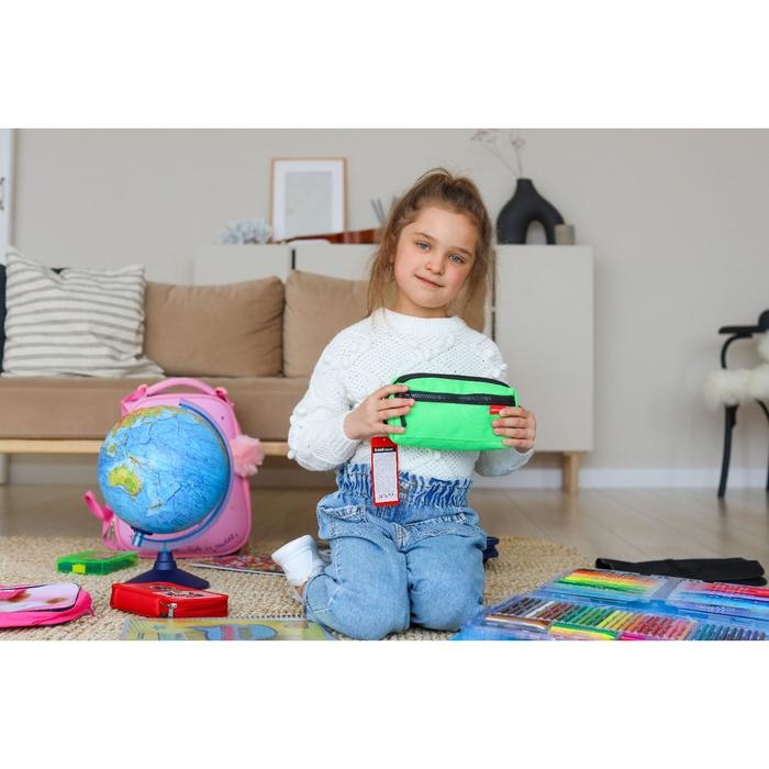 Пенал мягкий, 2 отделения, объёмный, 100 х 210 х 50 мм, Erich Krause, Neon Green 49004