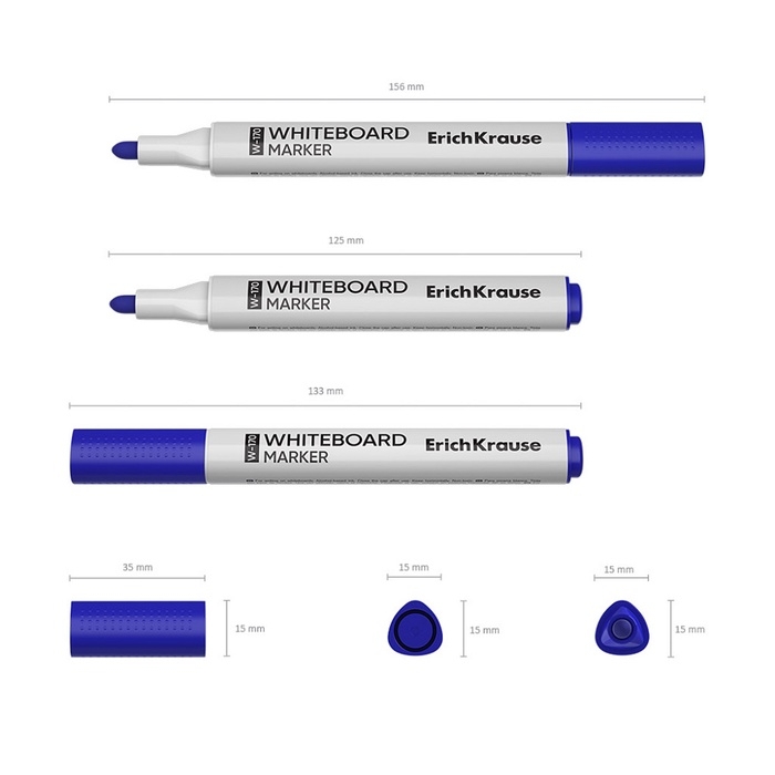 Маркер для письма и сухого стирания на досках. Незаменим во время проведения презентаций, совещаний и пр. Имеет эргономичную трехгранную форму корпуса, цветной колпачок, соответствующий цвету чернил. Наконечник пулевидной формы устойчив к повреждению и истиранию. Ширина письма - 2,0 мм. Чернила на спиртовой основе, быстро высыхают после нанесения, надписи легко стираются сухой тканью, не оставляя следов. Не токсичные. Не содержат ксилол, толуол. Хранить горизонтально. Срок годности 5 лет. Максимальная длина непрерывной линии 700 м.
