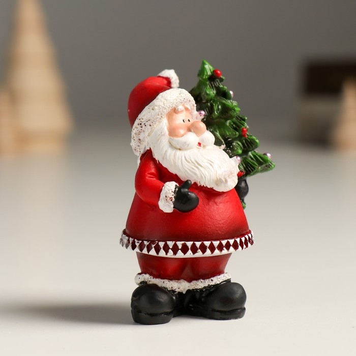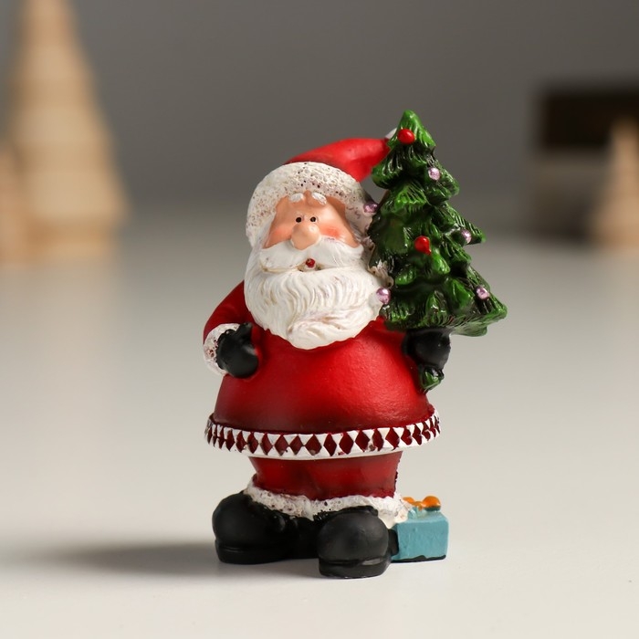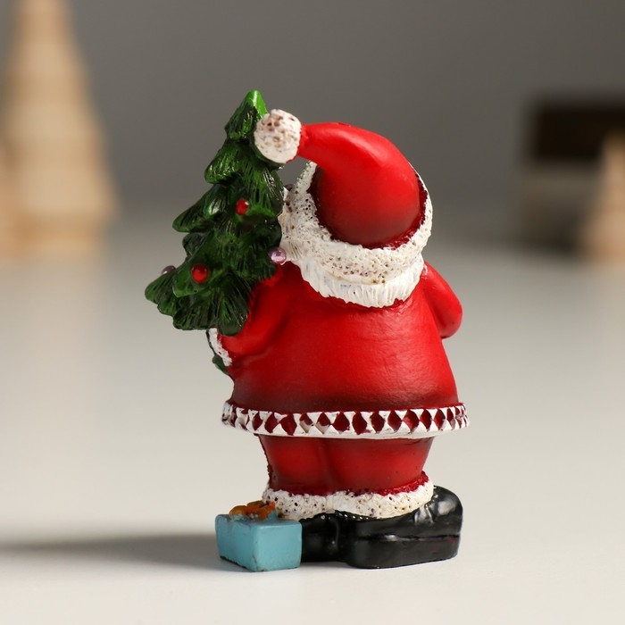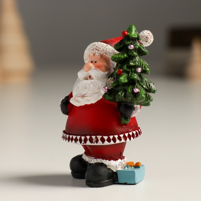 Сувенир полистоун "Дед Мороз в красном наряде с подарком" МИКС 6,5х5х4 см