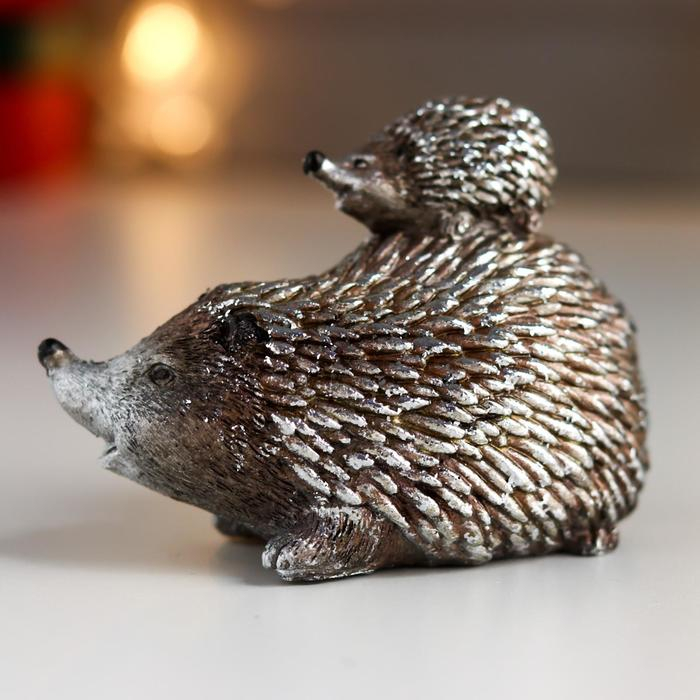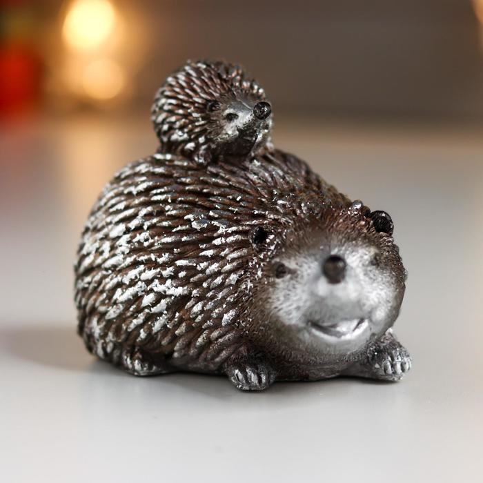Сувенир полистоун "Ёж с малышом ёжиком на спине" 7х6,5х10 см
