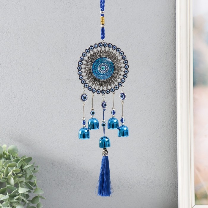 Музыка ветра металл, пластик "Мандала от сглаза" 5 колокольчиков, кисточка h=30 см