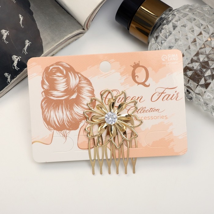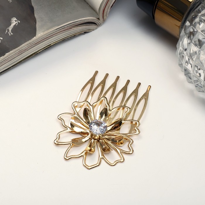 Гребень для волос «Либерти», горный цветок, 5.5×3.5 см, золото