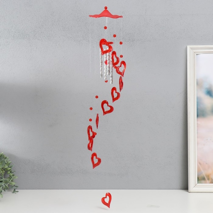 Музыка ветра пластик "Сердце" 4 трубочки 11 фигурок 50 см