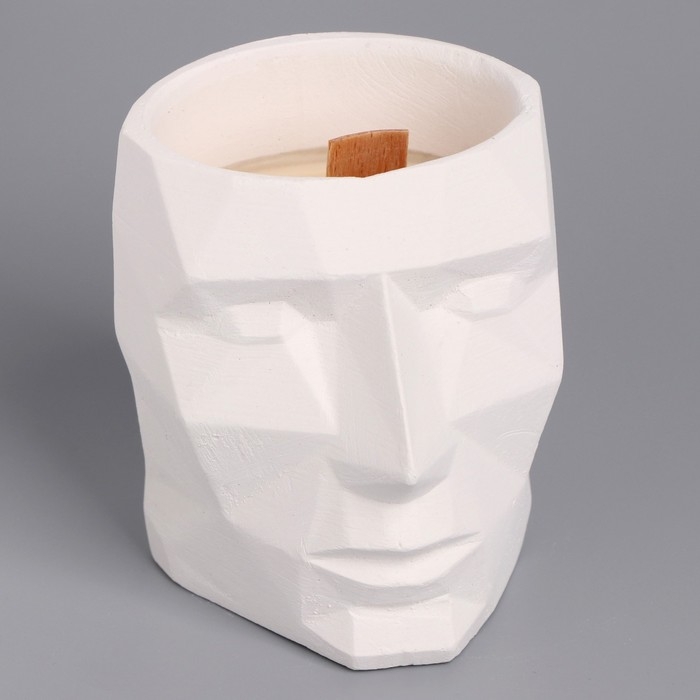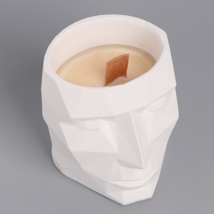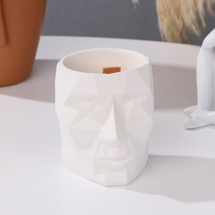 Свеча из соевого воска в кашпо «Геометрическая голова», 9×7.5 см, белая