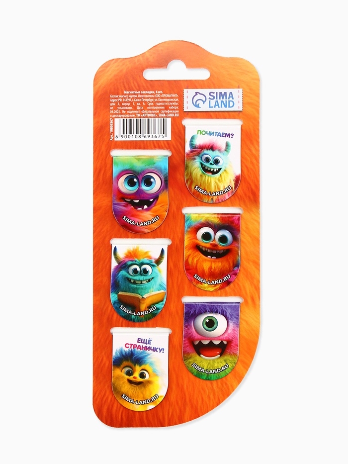 Закладки для книг, магнитные, 6 шт Буки Бяки
