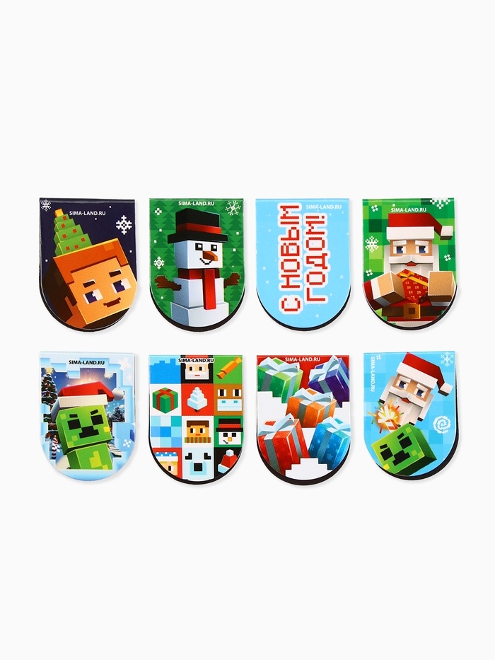 Закладки магнитные 8 шт на подложке "Пиксели"