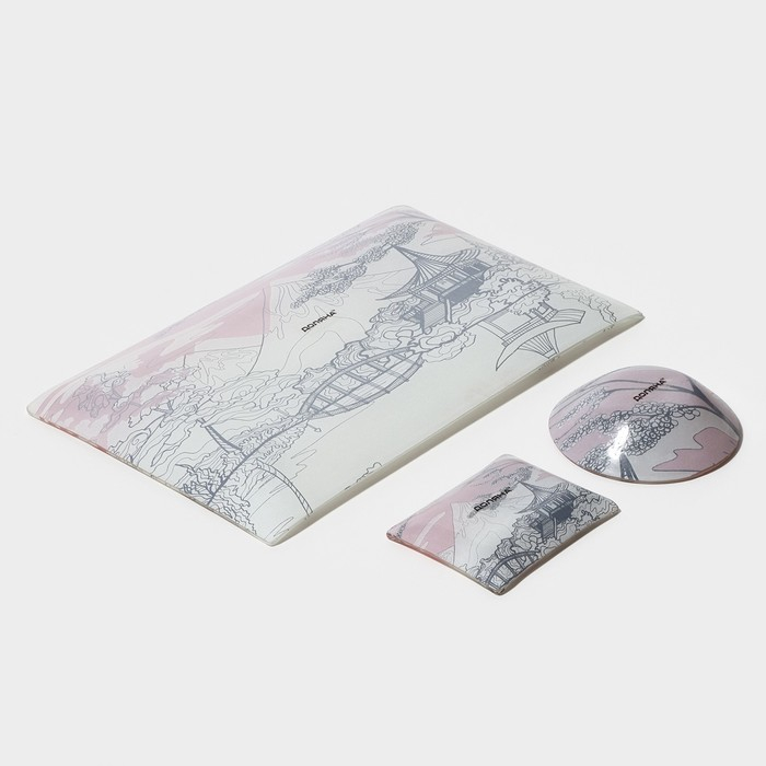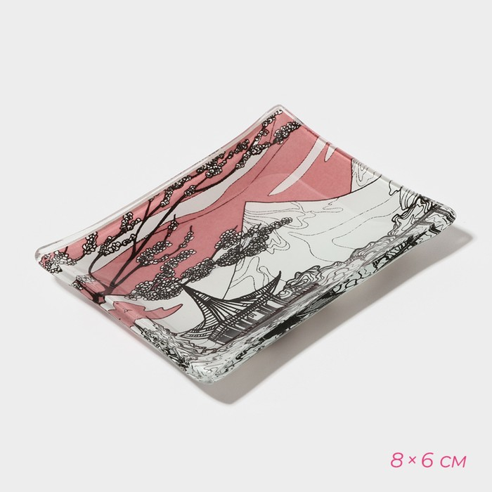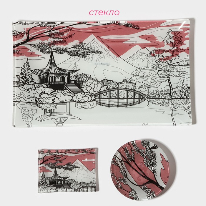 Набор для суши из стекла Доляна «Закат», 3 предмета: соусники 8×2 см, 8×6 см, подставка 25×15×2 см