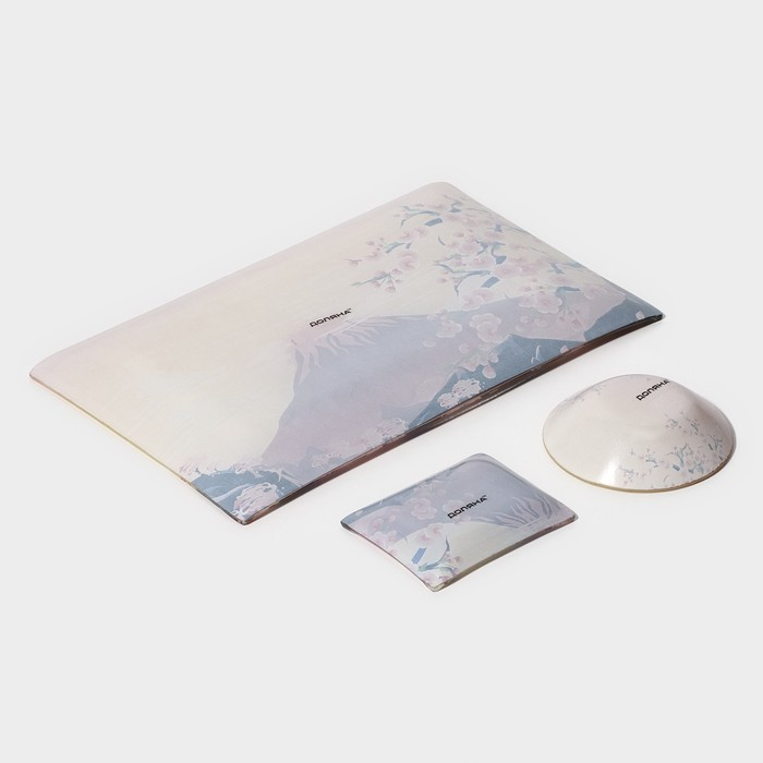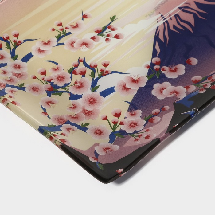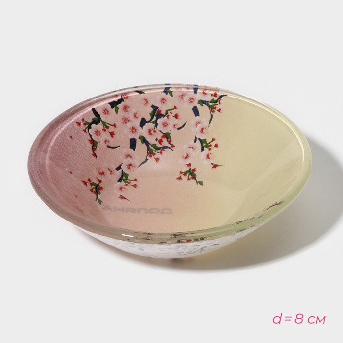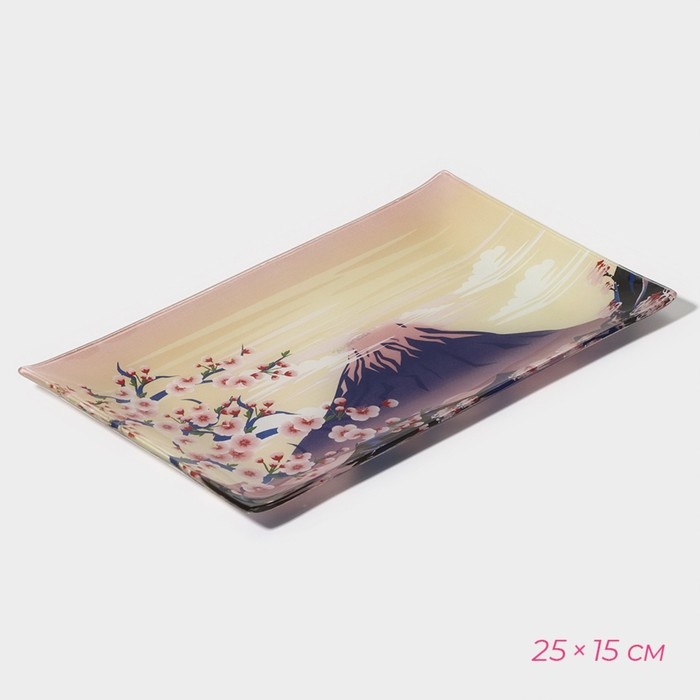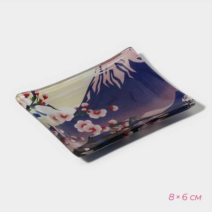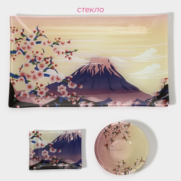 Набор для суши из стекла Доляна «Фудзияма», 3 предмета: соусники 8×2 см, 8×6 см, подставка 25×15×2 см