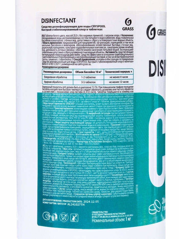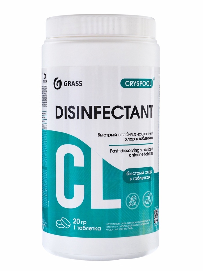 Средство дезинфицирующее для воды CRYSPOOL быстрый стабилизированный хлор в таблетках, 1 кг