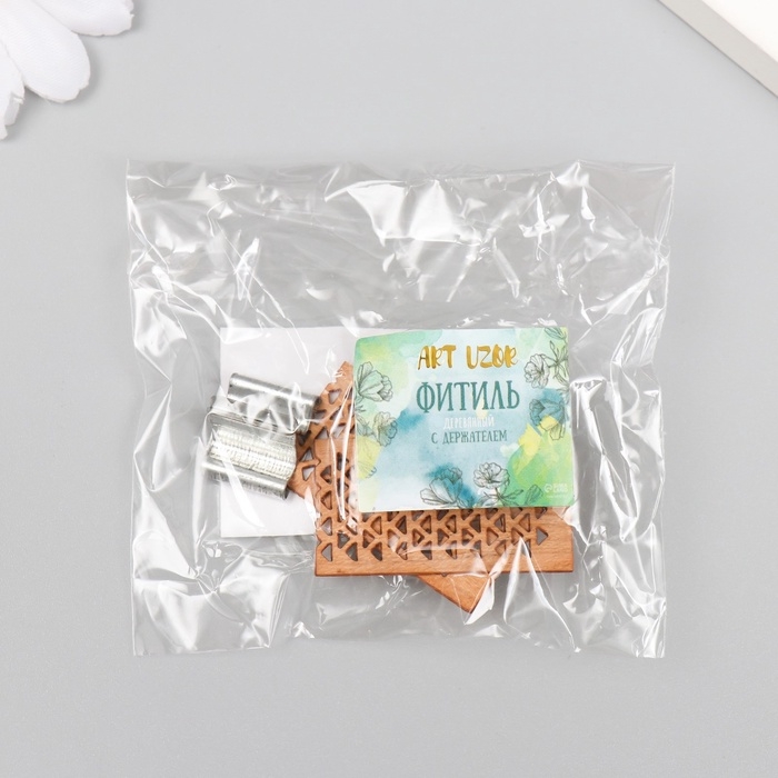 Фитиль для свечи дерево с металлическим держателем широкий набор 2 шт 2х3,6 см