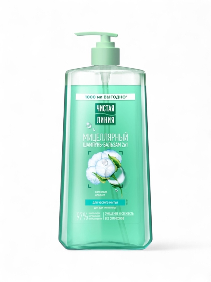 Шампунь-бальзам мицеллярный "Чистая линия" для частого мытья, 1000 мл