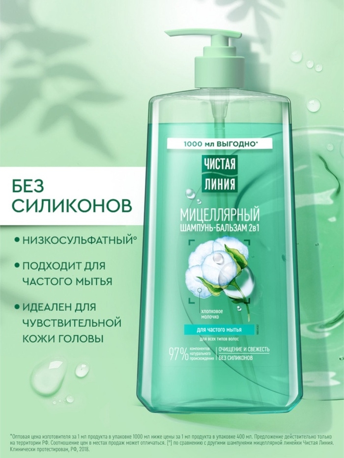 Чистая Линия Мицеллярный шампунь-бальзам — Чистота и уход каждый день