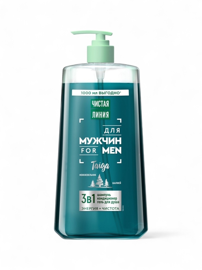 Чистая Линия Мужской 3 в 1 — Шампунь, кондиционер и гель для душа