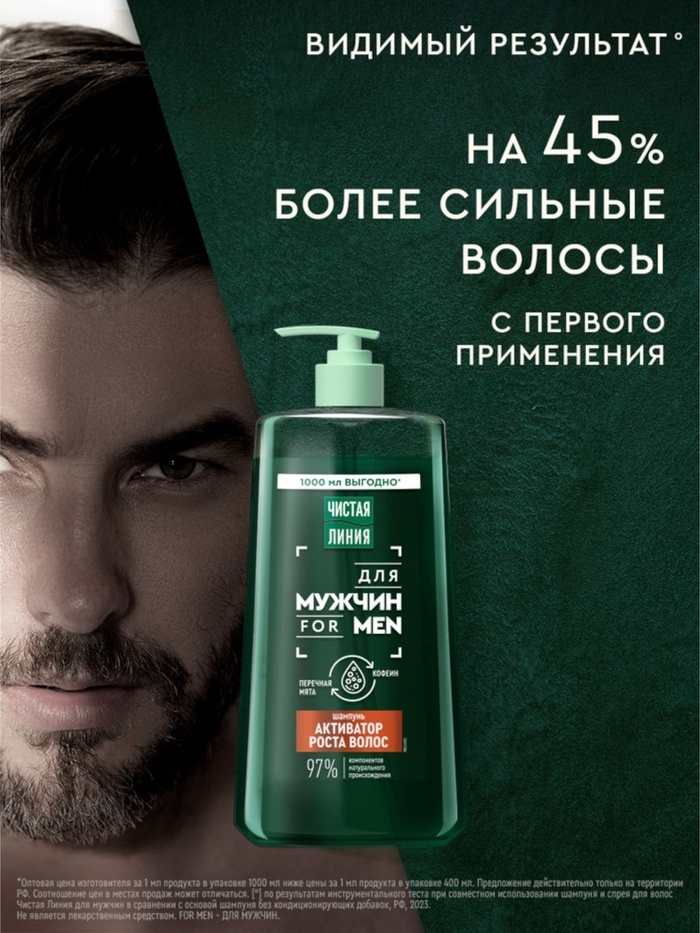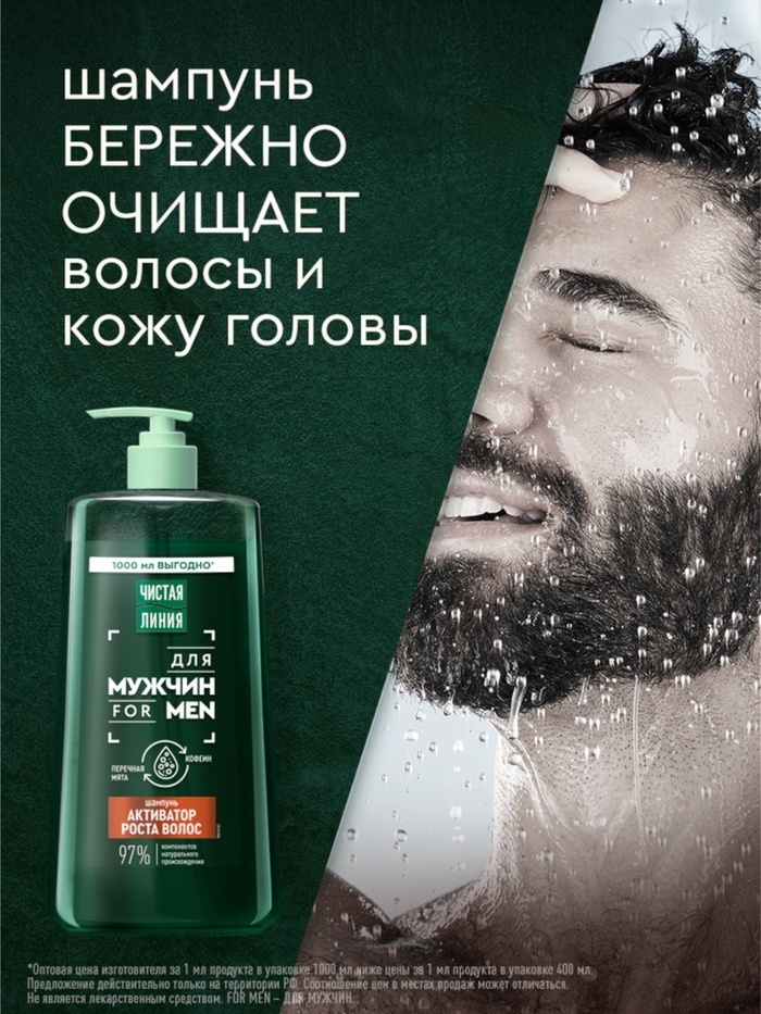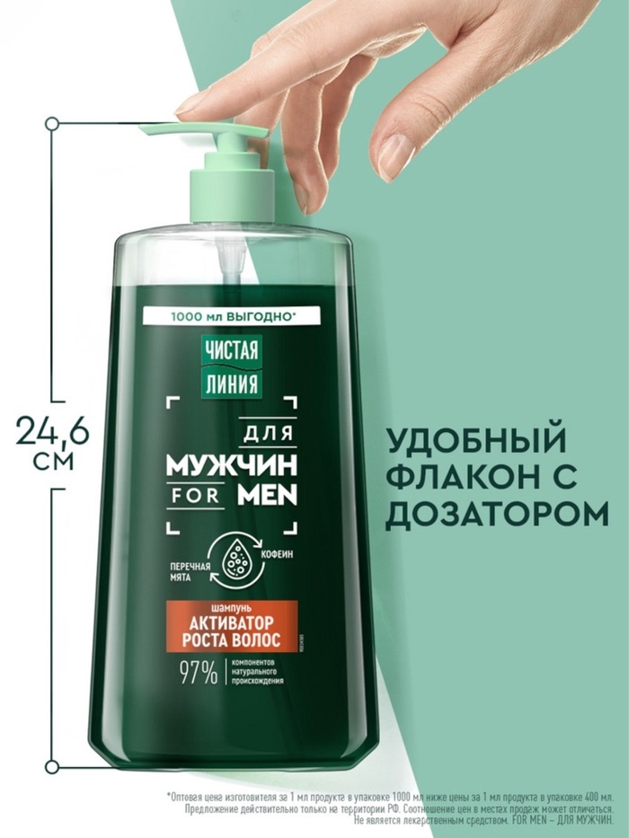 Шампунь для волос мужской "Чистая линия" активатор роста волос, 1000 мл