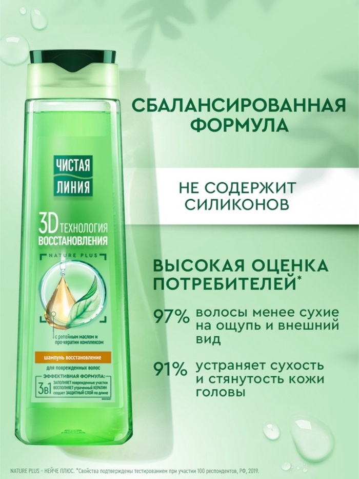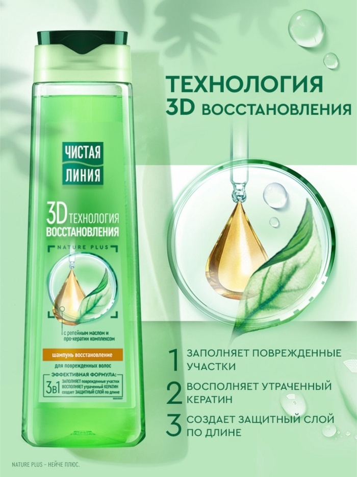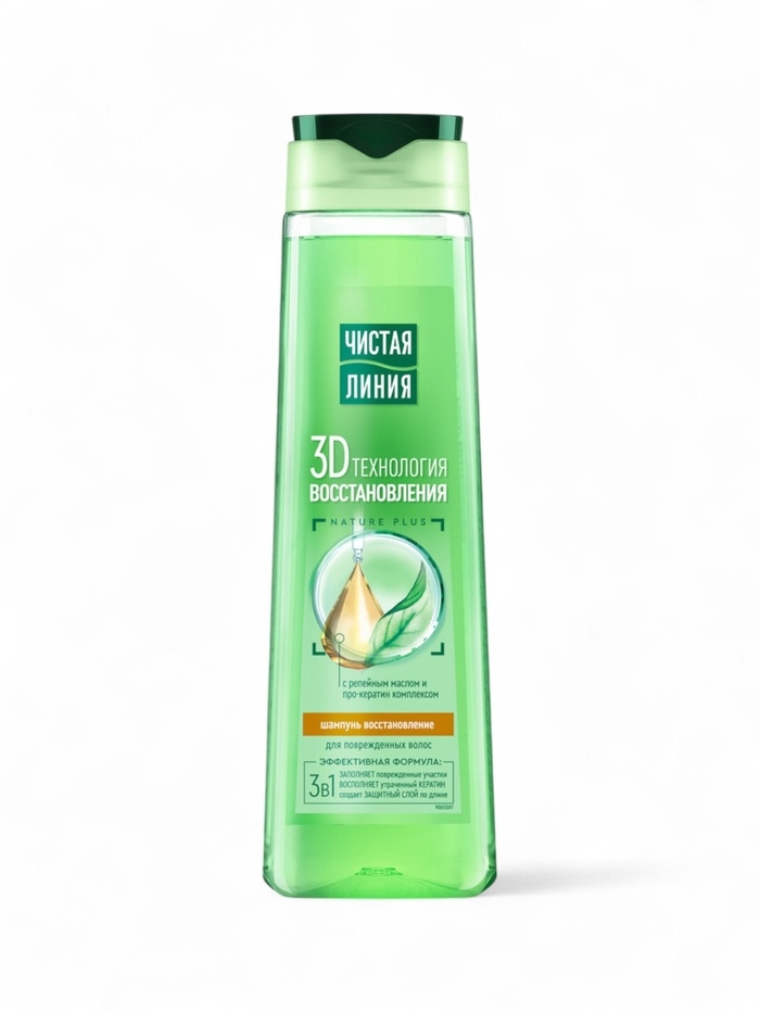 Подарите волосам глубокое питание и восстановление с шампунем Чистая Линия с репейным маслом и про-кератин комплексом. Репейное масло активизирует рост и укрепляет корни, а про-кератин восстанавливает структуру повреждённых волос, делая их гладкими, сильными и блестящими.