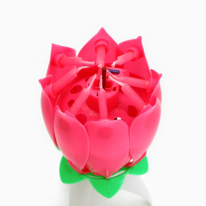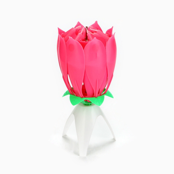 Свеча для торта музыкальная "Бутон", крутящаяся, розовая, 14,5 см