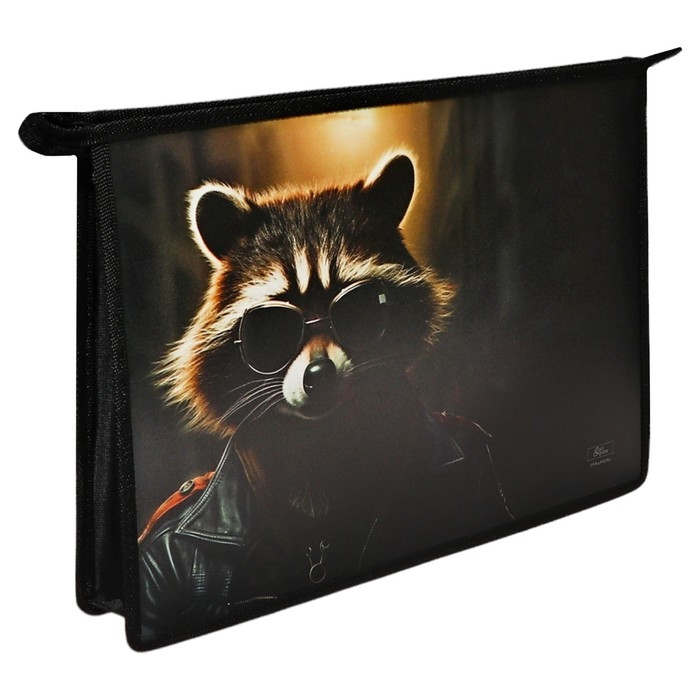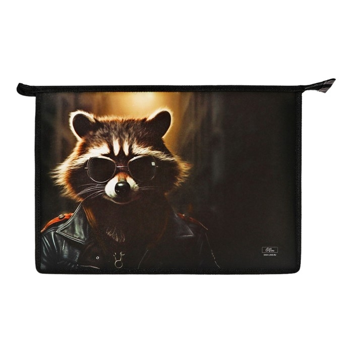 Папка для тетрадей А4, 325 х 230 х 55 мм, молния сверху, пластиковая, ПМ-А4-29 Calligrata "Енот"