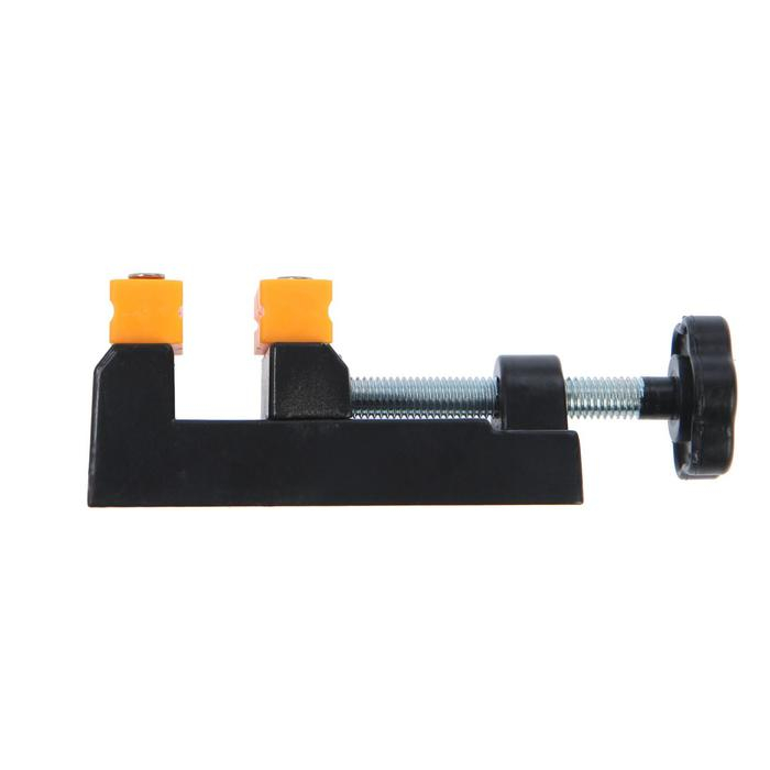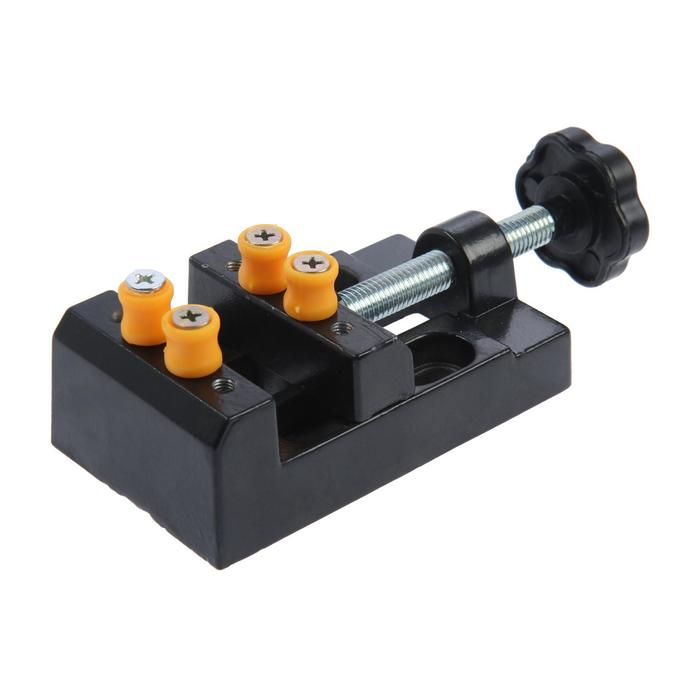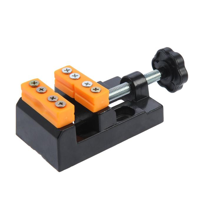 Модель изготовлена из алюминиевого сплава, оснащена пластиковыми съемными губками. Приспособление оптимально подходит для проведения небольших точных работ. Небольшие габариты дают возможность работать в ограниченных условиях.