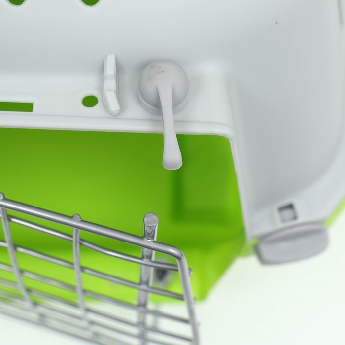 Металлическая дверца имеет удобные замки, расположенные с двух сторон, что обеспечивает надежное закрепление и предотвращает возможные побеги животного во время перевозки.