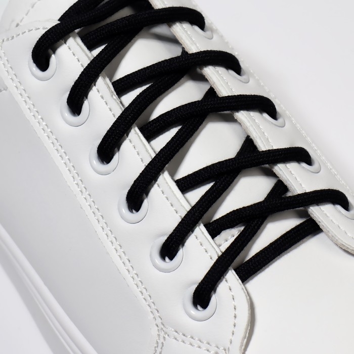 Шнурки для обуви, пара, круглые, с фиксатором, эластичные, d = 5 мм, 100 см, цвет белый