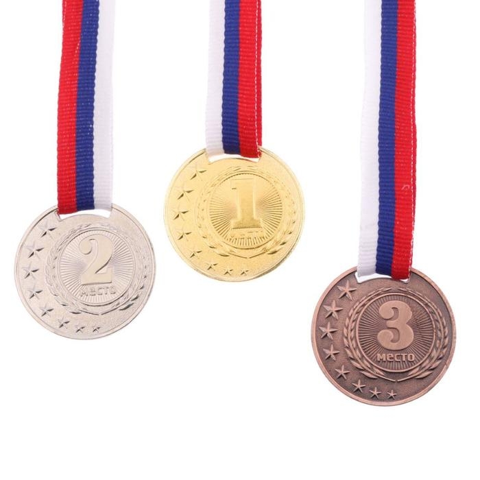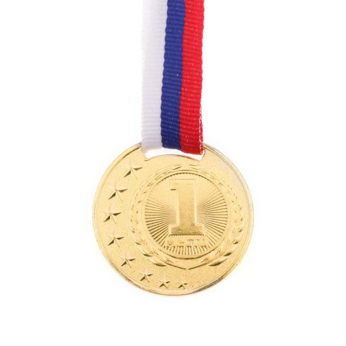 Медаль призовая 013, d= 5 см. 1 место, триколор. Цвет золото. С лентой