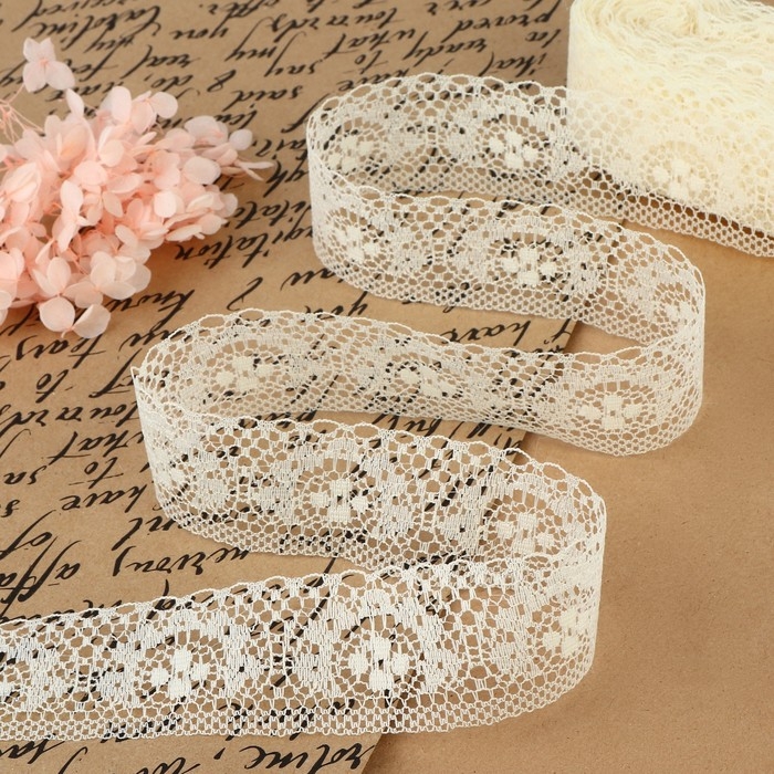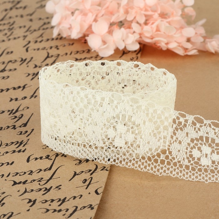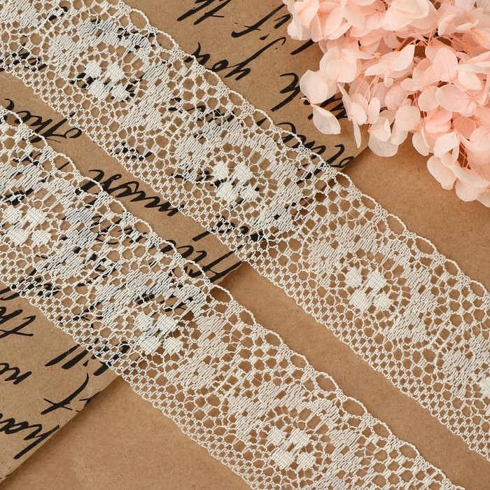 Кружево капроновое, 40 мм × 10 ± 1 м, цвет молочный