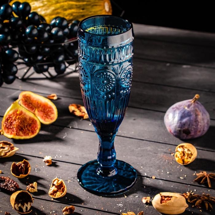 Бокал из стекла для шампанского Magistro «Ларго», 180 мл, 7×19,7 см, цвет синий