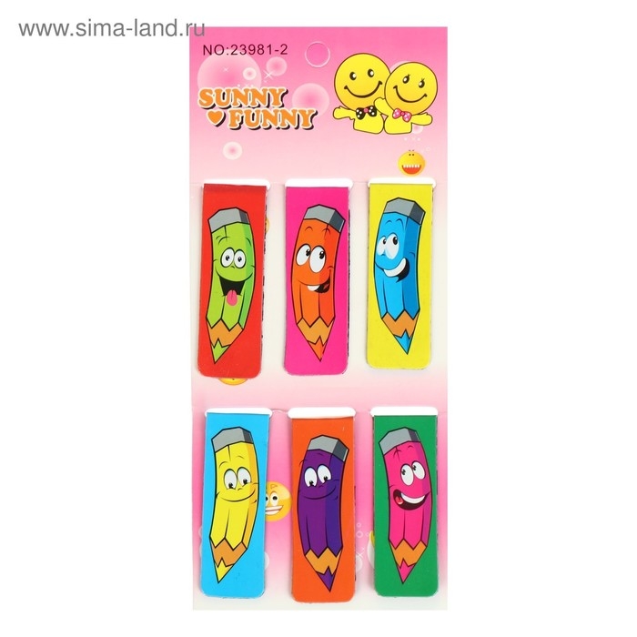 Набор закладок магнитных 6 штук "Веселый карандаш", Calligrata, ассорти