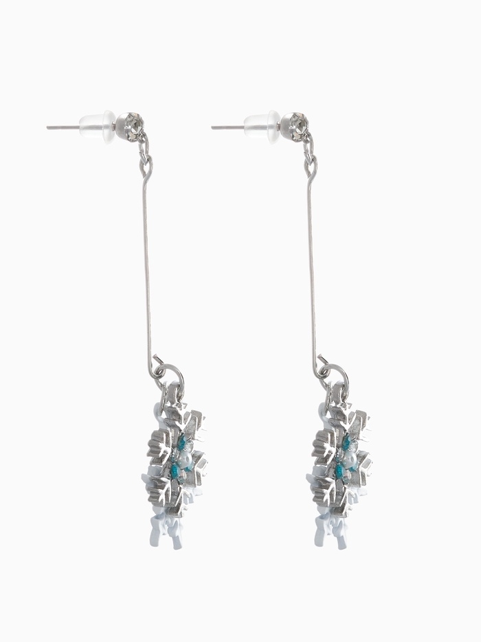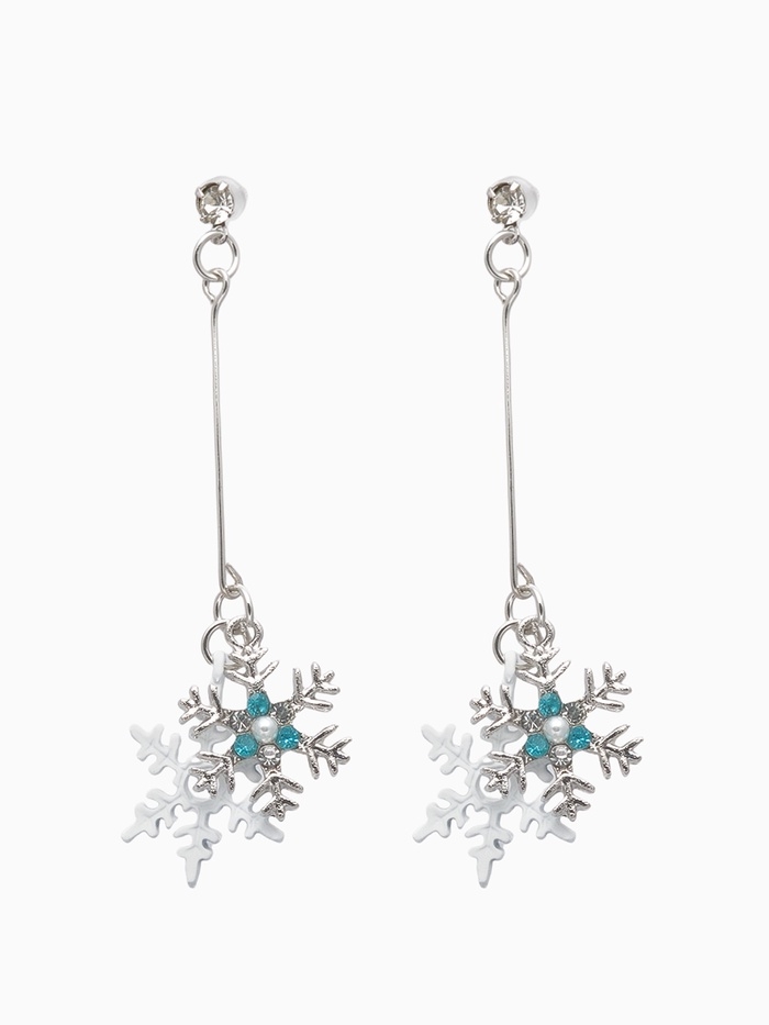 Серьги висячие со стразами «Новогодние» две снежинки, цвет бело-голубой в серебре