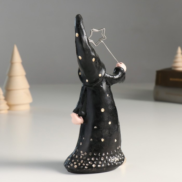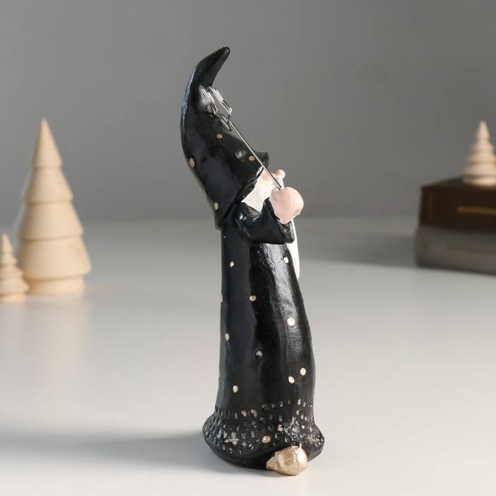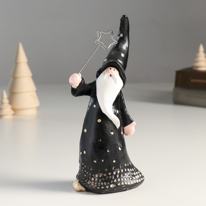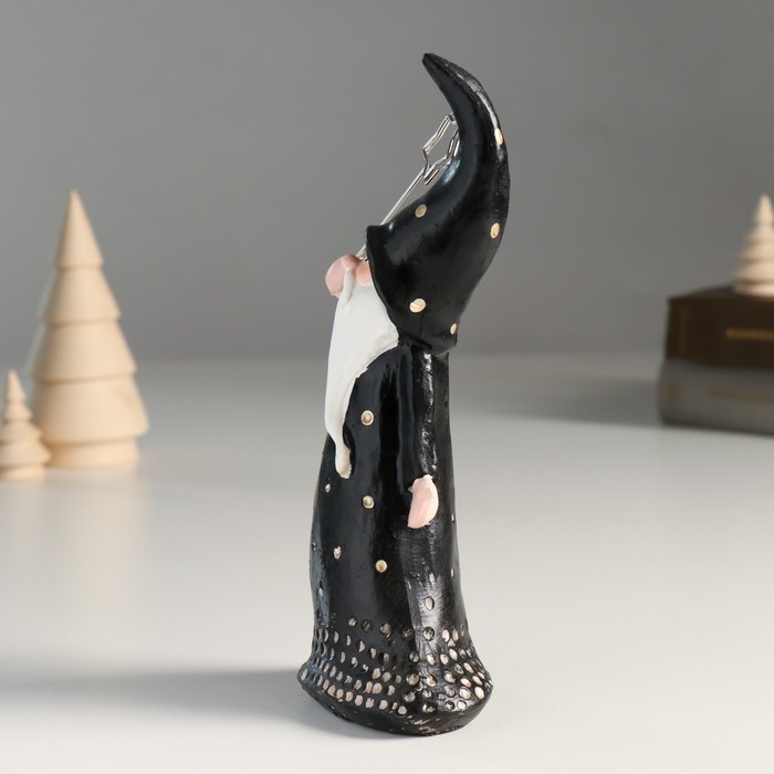 Сувенир полистоун держатель д/записок "Дед Мороз в чёрном наряде в горох" 8,1х5,3х18,2 см