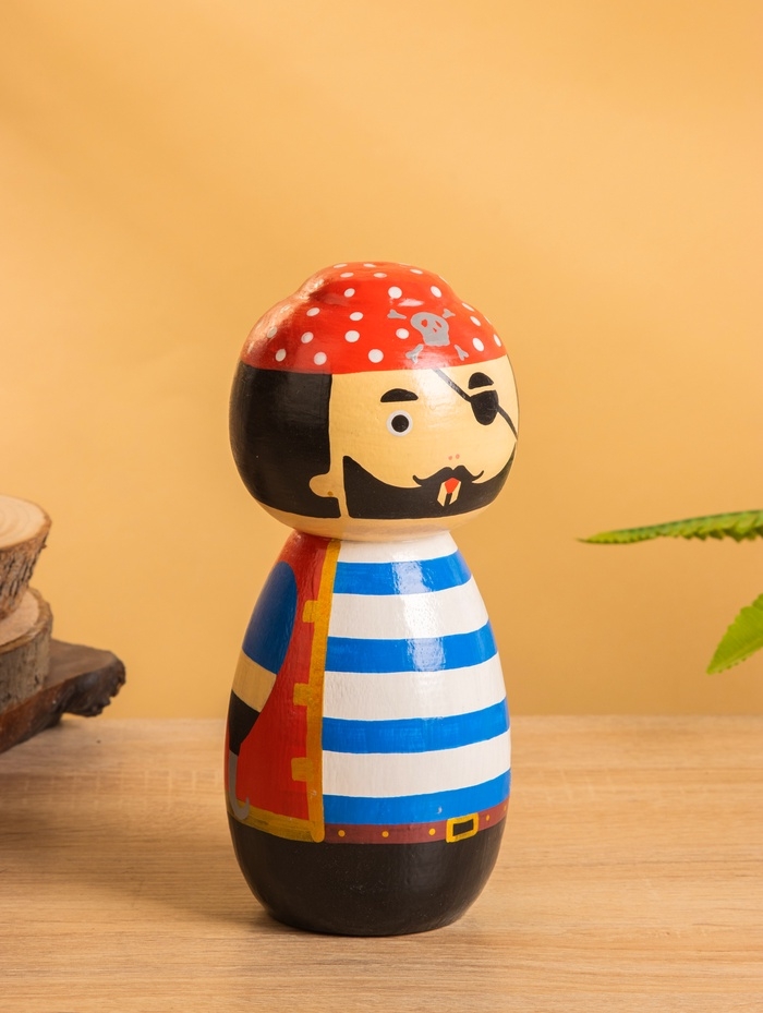 Деревянная кукла кокеши "Одноглазый пират" 9х9х21 см