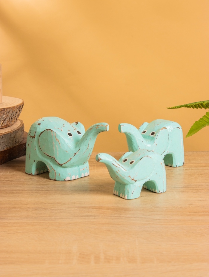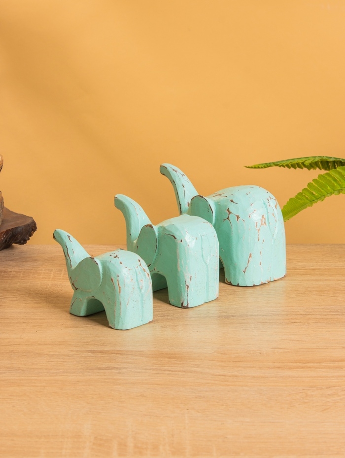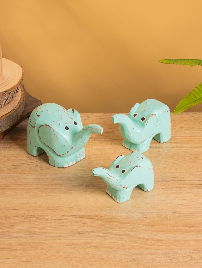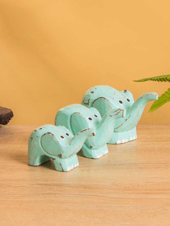 Сувенирный набор «Милые слоники», 12 см, 10 см, 9 см, дерево, бирюзовый