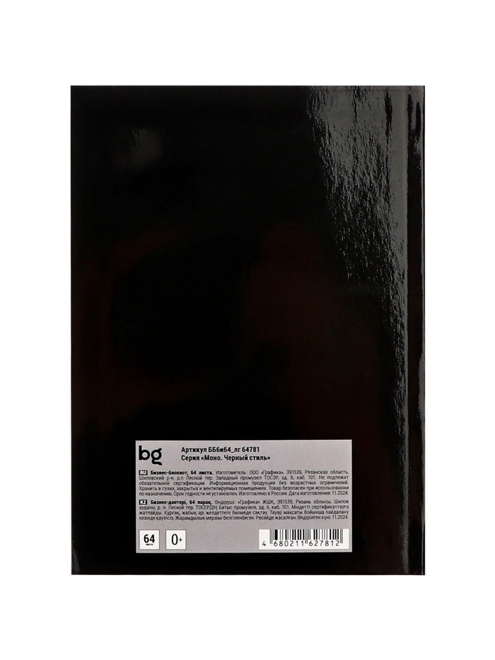 Блокнот А6, 64 листа в клетку «Черный стиль», твёрдая обложка, глянцевая ламинация