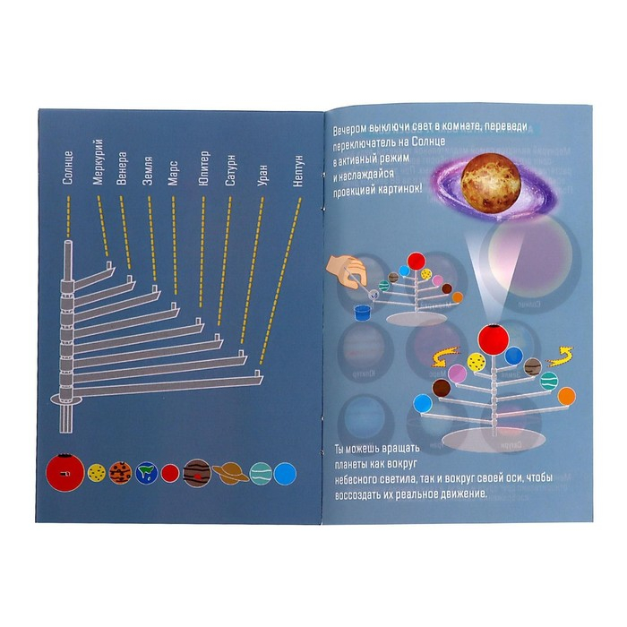 Набор для опытов «Эврики» отправит юного исследователя в далёкое путешествие в космос! Ребёнок соберёт планетарий и познакомится с Солнечной системой.