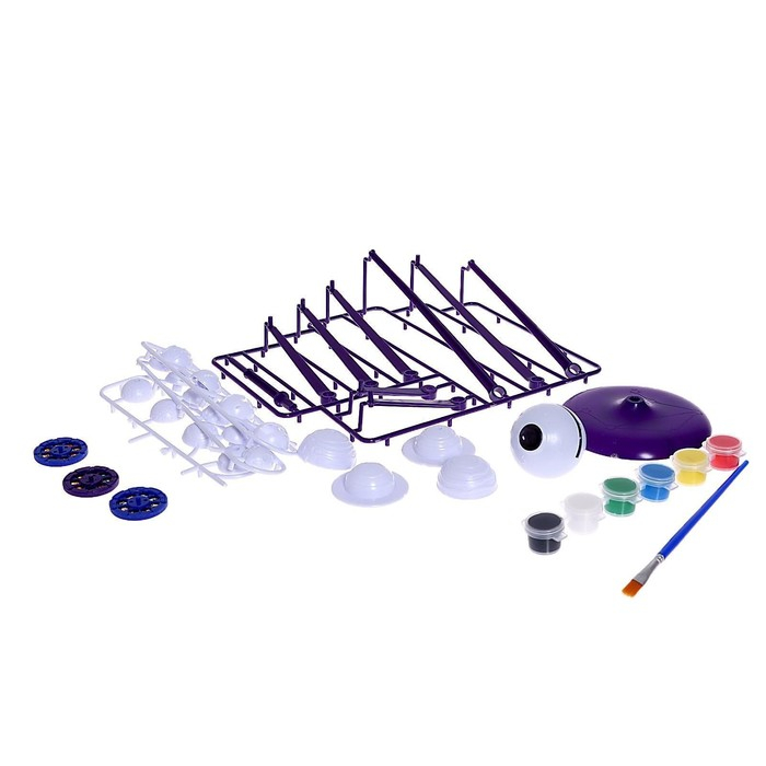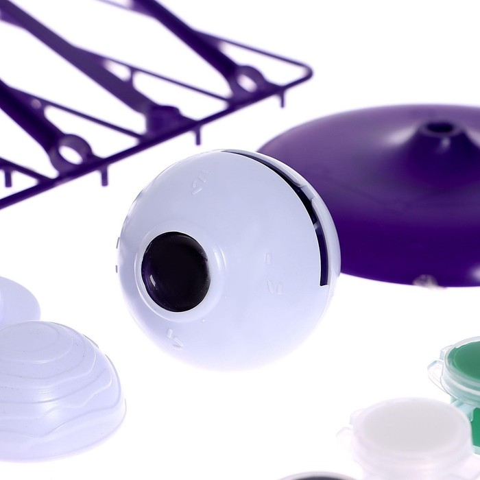 Соберите планеты и раскрасьте их кисточкой, ориентируясь по рисунку на упаковке. Установите готовые планеты на специальный держатель — и модель Солнечной системы готова!