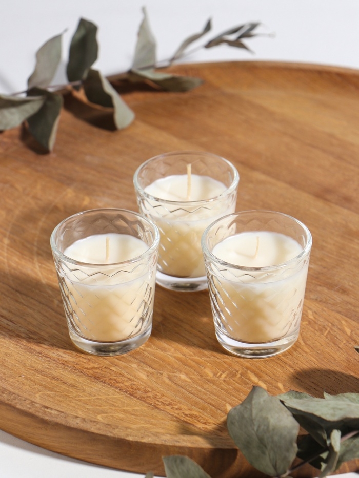Свеча ароматическая в стакане (набор 3 шт) по 50 мл, 10 ч, 32 гр, ВАНИЛЬ