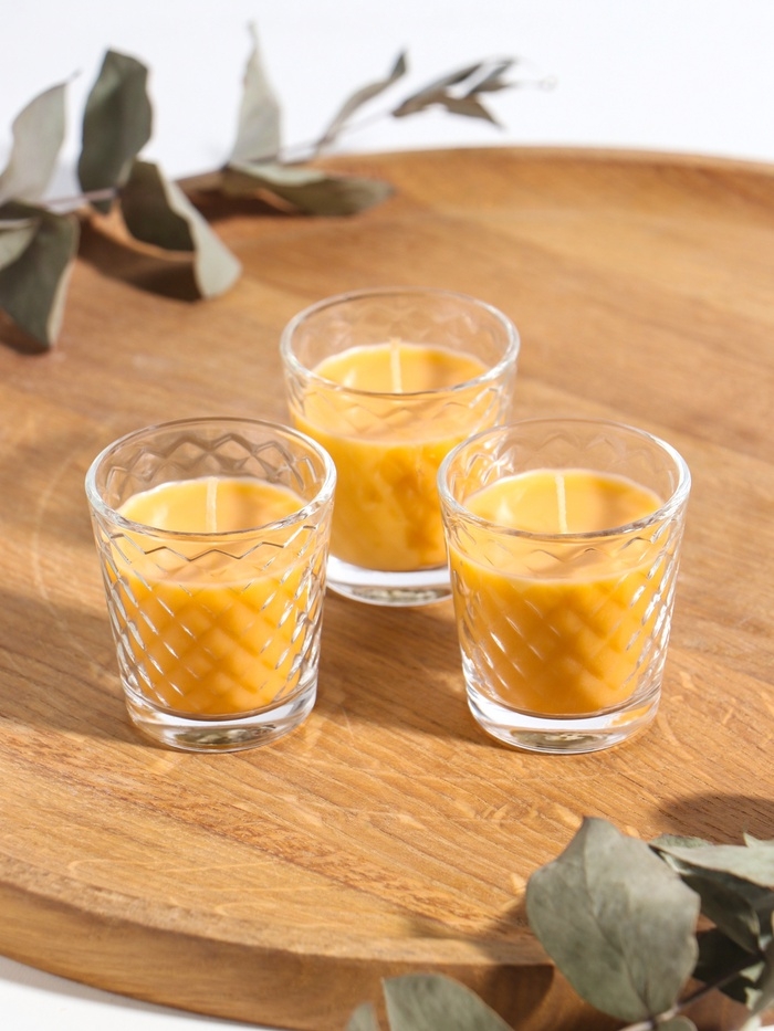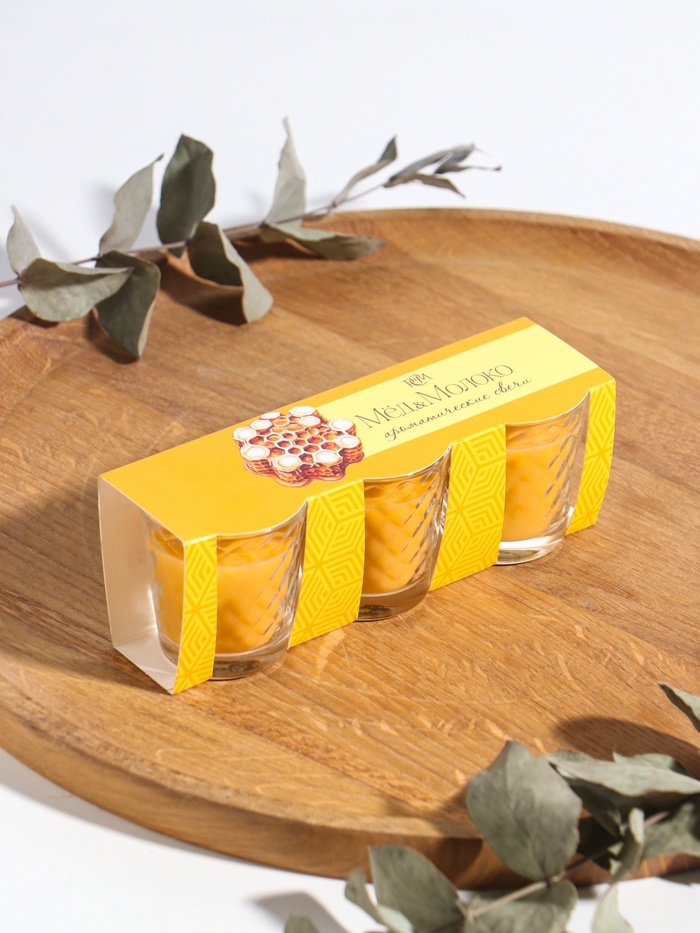 Свеча ароматическая в стакане (набор 3 шт) по 50 мл, 10 ч, 32 гр, МОЛОКО-МЁД